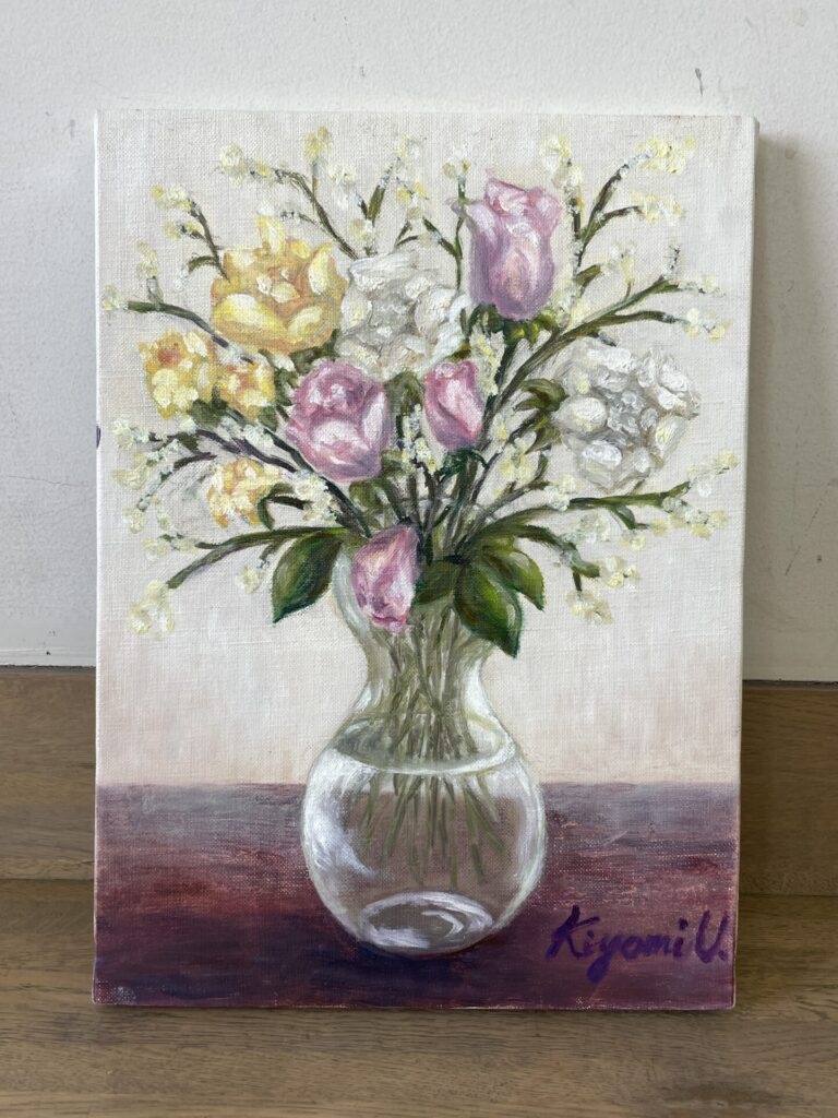 こんにちは、いずみ絵画教室です。 今回は、生徒さんが制作された油絵作品をご紹介いたします。 花の生き生きとした表情や、画面に広がる瑞々しさがとても魅力的な一枚です。