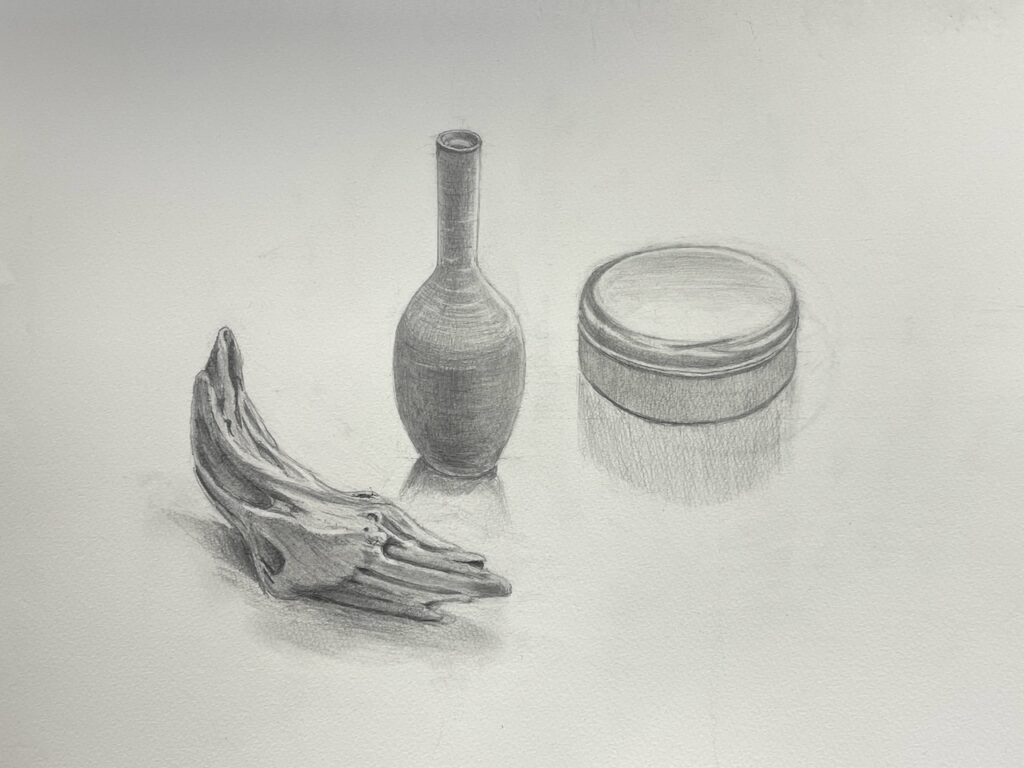 デッサンは描く頻度や個人差はもちろんありますが、一定期間続けることで確実に力がついていきます。 全く経験のなかった方でも、3ヶ月〜半年ほどで形のバランスや陰影の捉え方、鉛筆の調子などが整い、はじめに描いた絵よりも上達を実感される方が多くいらっしゃいます。