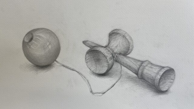 こんにちは、いずみ絵画教室です。 今回は、生徒さんのデッサン作品をご紹介いたします。けん玉は、描いて...