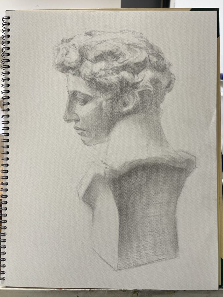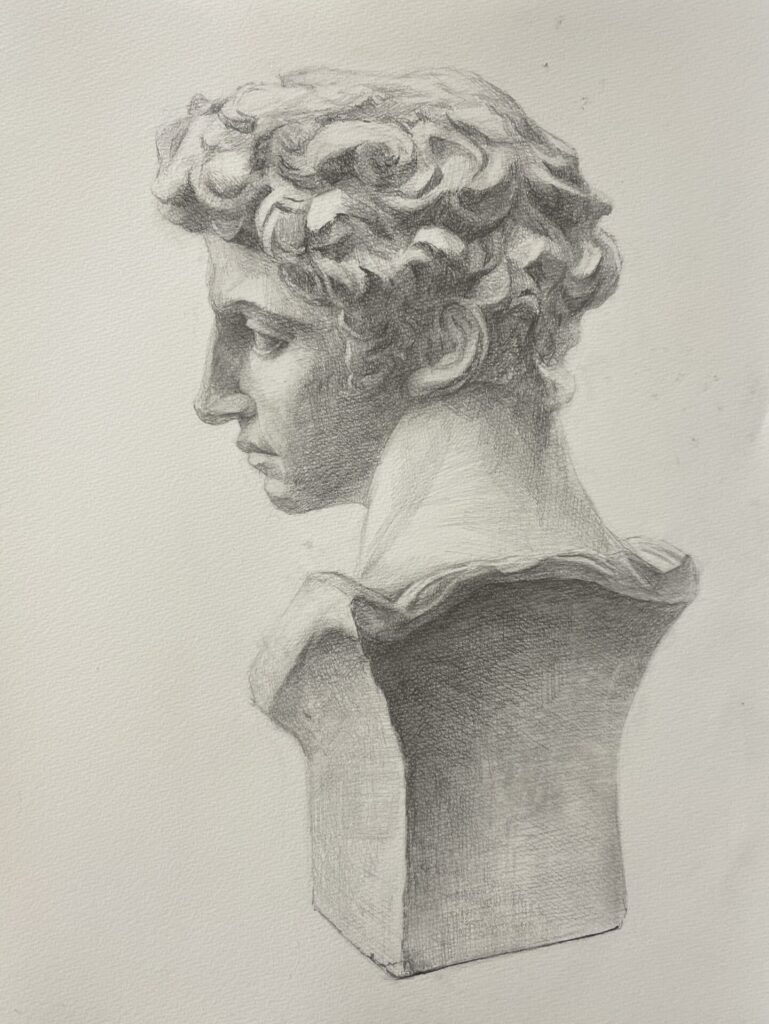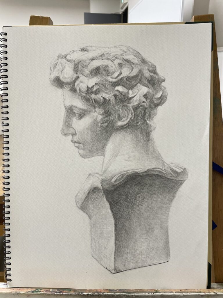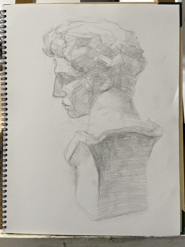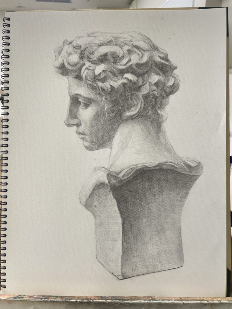 こんにちは、いずみ絵画教室です。 今回は、石膏像デッサンの制作過程をご紹介いたします。