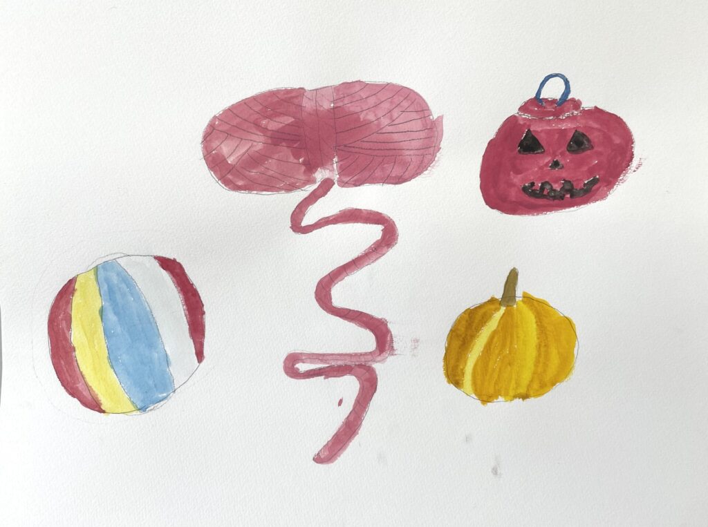今回、私が特に素晴らしいと感じたのは、鉛筆で描いた輪郭からはみ出さないように、自分で決めた形に丁寧に絵具を塗ることができている点です。