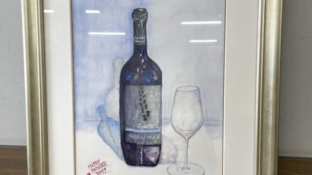 こんにちは、いずみ絵画教室です。今回は、生徒さんの水彩色鉛筆の作品をご紹介します。ワインボトルのある...